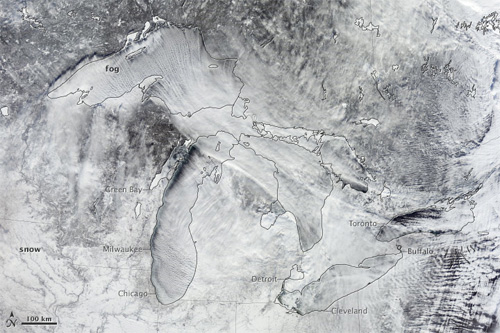 The cooling effects of the Great Lakes will be felt in the area well into the summer as the lakes have an “air conditioning effect” due to their massive size. The five lakes — Superior, Michigan, Erie, Huron and Ontario — cover 94,250 square miles (244,106 km2).