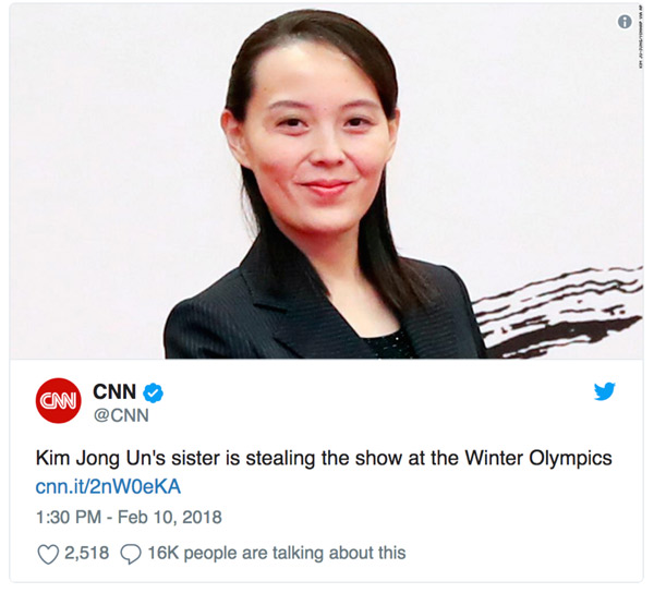 In its article, entitled Kim Jong Un’s sister is stealing the show at the Olympics, CNN wrote: