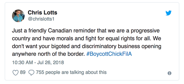 Chick-fil-A’s arrival in Toronto is proving controversial as those on the left unleash their outrage.