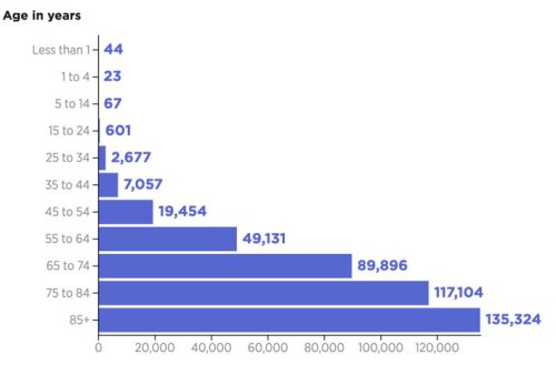 The following chart from the Heritage Foundation reveals deaths by age groups provided by the US Centers of Disease Control (CDC), effective Feb 3, 2021: