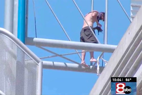 This past Tuesday (June 15, 2021), Rick Jewell from Tulsa, Oklahoma was out with his son when he came across a young man who had climbed on top of a structure that holds up a sign over a highway near KTUL-TV. It appeared that the distraught man facing legal problems was planning to jump.