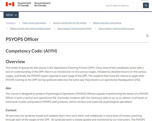 A while back, Canada’s federal government posted a job opening for someone to carry out psychological operations training for Canada’s military.