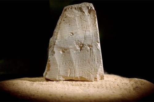 Though there were only a few words scratched on the small chalkstone, it was obviously intended as a ledger keeping track of some type of financial arrangement.