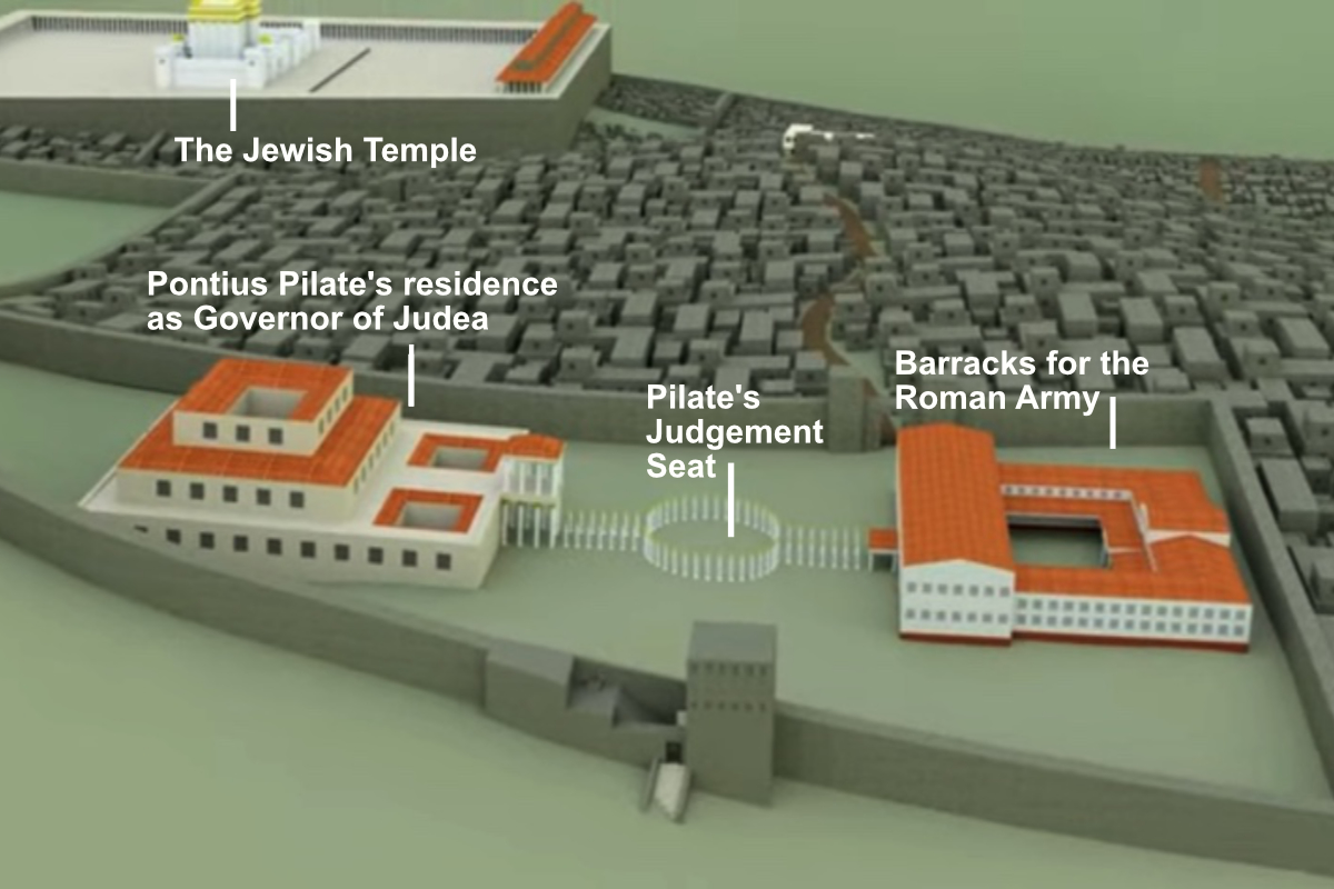 A gate was constructed near the palace and judgment seat, allowing Pilate an easy escape if the Jews ever rebelled.