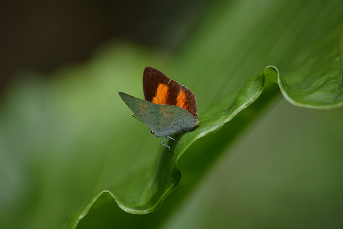 The caterpillar of the Angled Sunbeam found in Asia defends itself by trying to startle potential predators by rapidly shooting out fireworks-like receptors from two shafts located on the top of its head.