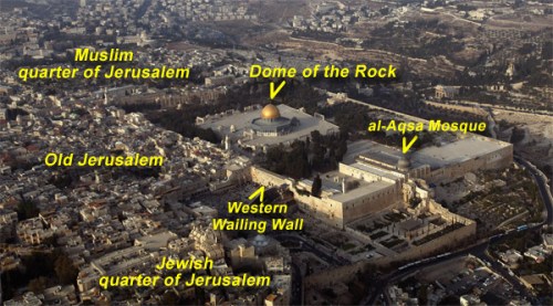 The Temple Mount in Jerusalem, where the Jewish Temple once stood, is Judaism’s most holy site. It is currently controlled by the Muslims through a Jordanian-based Waqf and has two Islamic structures on the site, including the Dome of the Rock and the Al-Aqsa Mosque.