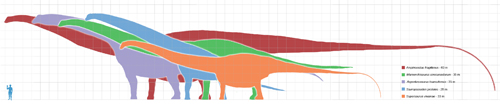 Diferentes tamaños de Sauropodos.